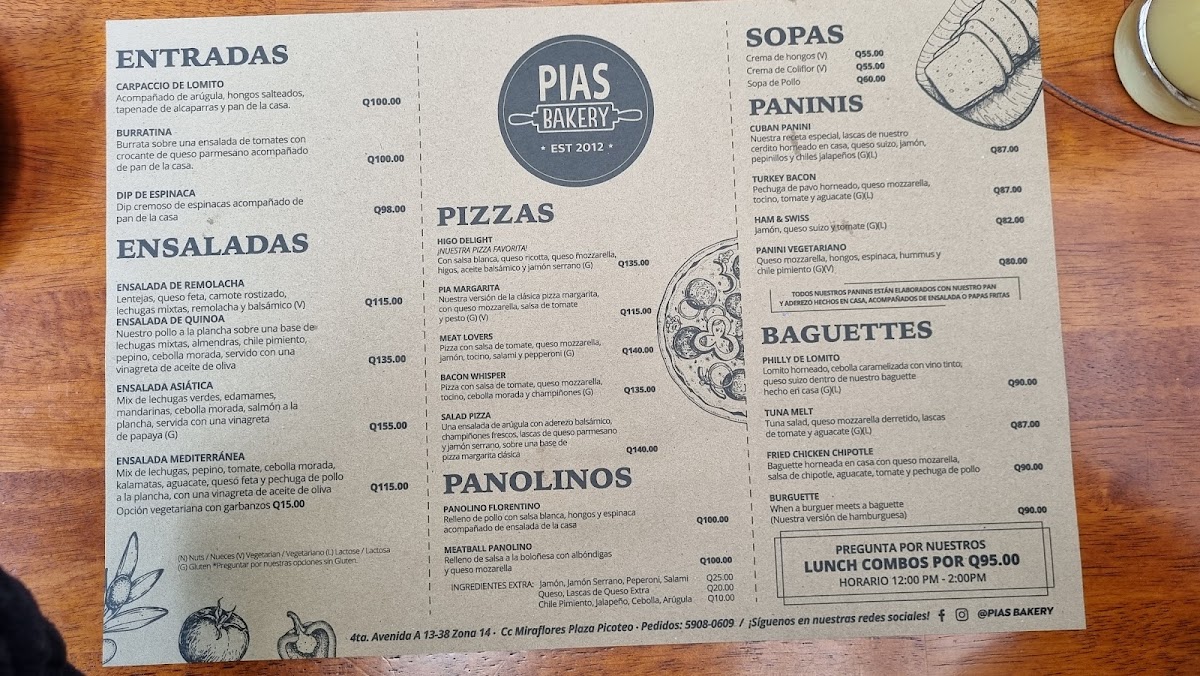 PIAS BAKERY Menu